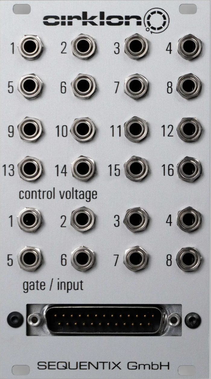 A 14 HP Eurorack Breakout Module for use with the Cirklon CVIO model.